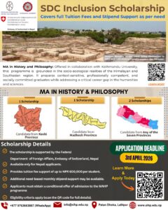 MA in History and Philosophy is a 60-credit programme, in collaboration with the Kathmandu University, intended to provide curricula tailored to Himalayan and Southasian socio-ecological realities and aspirations, to prepare context-sensitive, professionally competent and socially committed graduates.